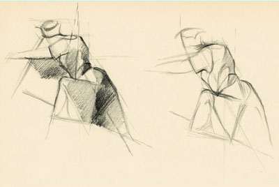 I disegni che seguono fanno parte di una nutrita serie di studi realizzati dal pittore Giorgio Radice e dedicati a due opere della piena maturità del Maestro caldarolese del Cinquecento, che a San Ginesio ha lasciato anche altri dipinti considerevoli. I disegni sono stati fatti a più riprese, con tecniche diverse e spesso ripetuti per trarne versioni più convincenti.